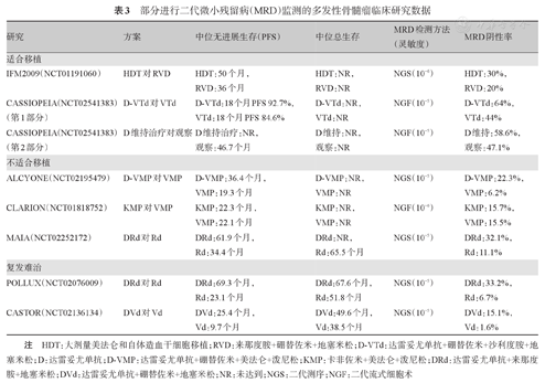 部分进行二代微小残留病(MRD)监测的多发性骨髓瘤临床研究数据