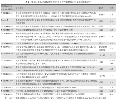 部分以微小残留病(MRD)指导多发性骨髓瘤治疗策略的临床研究