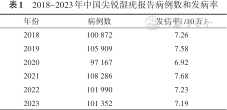2018-2023年中国尖锐湿疣报告病例数和发病率