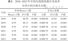 2018-2023年中国尖锐湿疣报告发病率全局空间自相关分析