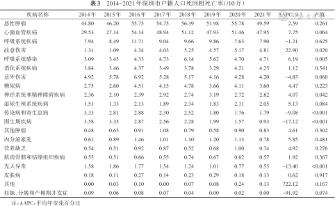 Cai D, Zhang J, Liu JR, et al. Analysis of mortality burden among permanent residents in Shenzhen,2014-2021[J]. Chin J Epidemiol, 2024, 45(8):1093-1102. DOI: 10.3760/cma.j.cn112338-20240418-00204.