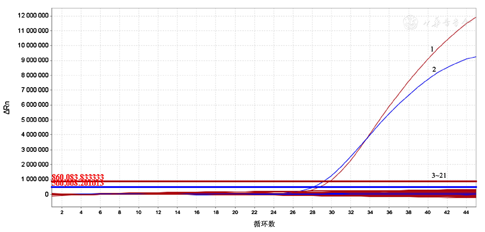 2×Taqman PCR MasterMix购自北京索莱宝公司;QuantStudio™ 6 Flex实时荧光定量PCR系统购自美国Thermo Fisher公司;QIAamp核酸小量提取试剂盒购自德国QIAGEN Gmbh公司;Qubit仪、高速离心机购自美国Thermo Fisher公司;微量移液器购自德国Eppendorf公司;超低温冰箱购自中国美菱低温科技股份有限公司;生物安全柜购自青岛海尔深谷医疗股份有限公司。