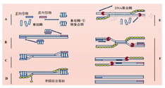 注:A:重组酶-引物复合体;B:复合物特异识别DNA双链;C:重组酶的链置换活性将引物插入到同源位点;D:单链结合蛋白与解离的单链形成稳定的D环结构;E:重组酶从D环解离,聚合酶绑定;F:聚合酶延伸引物,启动新DNA链的合成;新合成的DNA双链重复进行A~F的过程,实现目的DNA的序列扩增