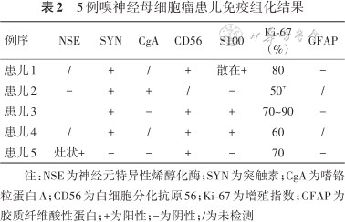5例嗅神经母细胞瘤患儿免疫组化结果
