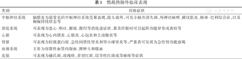 Cps经肺吸入后,首先入血,在肝、脾、单核巨噬系统内增殖,再经血行播散至全身器官,累及肺、脾、肝、肾及中枢神经系统,故鹦鹉热患者临床症状多样,包含肺炎、肝炎、肾脏功能损害等表现[32]。表1整理了除呼吸系统外,Cps感染其他系统临床表现。