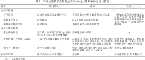 肺炎衣原体和Cps感染导致的肺炎临床表现非常相似,通常表现为发热、阵发性咳嗽,同时伴有明显肺外症状,胸部X线多见浸润病灶[40]。与Cps的鉴别诊断主要依据近期流行病学接触史以及实验室检查情况。