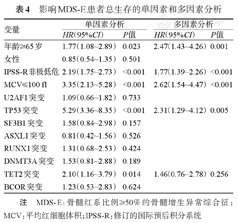 | TET2突变 | 2.10(1.16~3.79) | 0.014 | 1.46(0.76~2.78) | 0.256 |