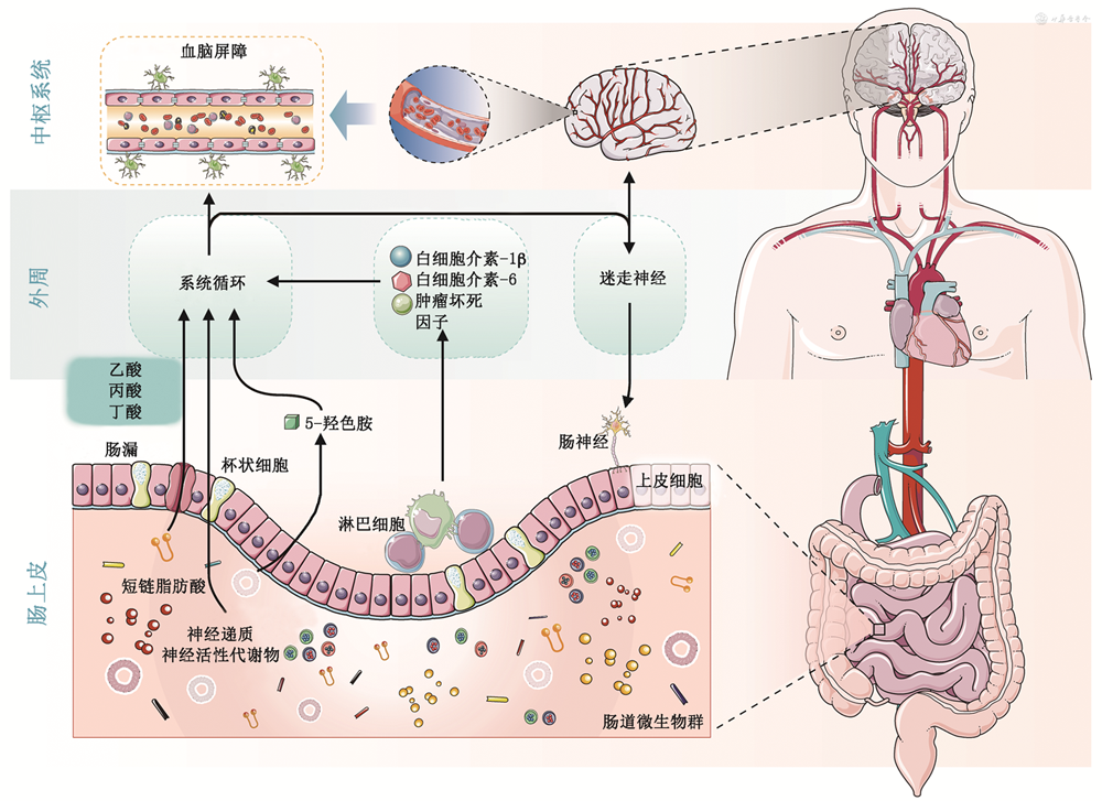 自闭症谱系障碍(ASD)是一种常见于儿童的复杂神经发育障碍疾病,其特征包括社交互动障碍、沟通困难和重复性行为等。近年来对于ASD与肠道菌群失衡之间关系进行了一系列研究,发现正常发育个体与ASD患者在肠道菌群组成上的差异较为显著。本文综述了ASD患者肠道菌群的特征,并讨论了ASD患者肠道菌群失衡对小胶质细胞介导的免疫系统的影响,以及肠道菌群代谢物通过微生物-肠-脑轴对中枢神经系统的影响,从而增加了ASD疾病的易感性。此外,基于肠道菌群对ASD干预策略,主要是针对粪菌移植在ASD的干预和治疗中的研究进展进行讨论,为ASD早期干预和治疗提供新思路。