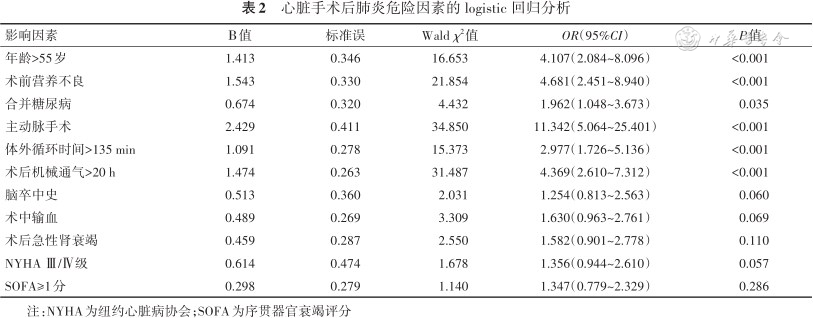 心脏手术后肺炎危险因素的 logistic 回归分析