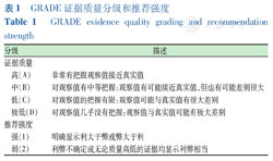 本指南通过问卷调研拟定了12个临床问题,检索策略和指南制订方案详见《中国儿童呼吸道合胞病毒感染诊疗及预防指南计划书》[14] ,检索时限均为建库至2023年7月。本指南采用证据推荐分级评估、制订与评价方法(grading of recommendations assessment,development and evaluation,GRADE)系统(表1)对推荐意见的证据质量和推荐强度进行分级,并形成推荐意见[15],综合考虑证据质量、患儿/家长的偏好和价值观、干预措施成本等利弊平衡后共拟定16条推荐意见。于2024年8月11日召开线上专家共识会议,逐条讨论推荐意见、最终达成共识。参考反馈意见进一步修改指南全文,并由5名外部评审专家审定,最后交由指导委员会审核最终定稿。指南工作组将根据证据更新情况,在3~5年内适时启动更新。