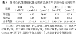 注:FT3:游离三碘甲状腺原氨酸;FT4:游离甲状腺素;检测均在ADVIA Centaur XP(西门子,美国)平台上进行
