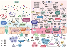 IBD主要包括克罗恩病(Crohn's disease,CD)和溃疡性结肠炎(ulcerative colitis,UC),其发生发展可能与肠道微生物、免疫因素、环境因素和遗传易感性有关[2]。其中肠道微生态的失调可能对IBD患者的发病机制产生至关重要的影响(图1)。
