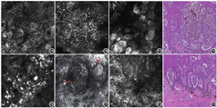 作为一种实时、具有细胞分辨率的无创检查方法,RCM在黑素细胞肿瘤的早期监测、辅助诊断和评估预后等方面具有重要的意义。因其是基于细胞水平的改变作出诊断,对医师的临床和病理水平都有较高要求。近年来,人工智能在RCM领域也取得了一定进展,已可用于黑色素瘤的辅助诊断和分型[46],也可将灰度RCM图像转换为具有微观分辨率的HE染色图像[47]。但操作人员的扫描流程、扫描习惯、图像生成及图像描述的不规范和不一致,导致RCM报告难以互认,阻碍了RCM的推广和在人工智能中的应用。同时,RCM皮肤成像还存在固有局限性,例如有限的穿透深度和对特殊病变(结痂、溃疡)的成像质量不佳,无法区分活化的朗格汉斯细胞和树突状黑素细胞等[31]。因此,未来需要建立统一的质控标准(可参照《反射式共聚焦显微镜皮肤检测质控专家共识(2023)》),进一步探索其他皮肤肿瘤疾病的RCM特征,并研究如何将RCM与组织病理、其他皮肤影像技术、人工智能技术相结合,推动RCM更广泛地应用和发展。