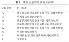 本专家共识基于参与共识制订专家组深厚的临床实践经验以及对相关文献的系统综合评价,参考牛津大学循证医学中心分级系统(OCEBM)[2]并加以修改,对证据质量进行分级(表1),旨在更为直观地反映研究现状及应用价值。