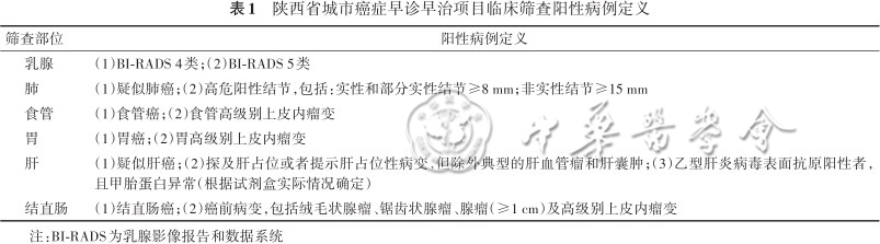 陕西省城市癌症早诊早治项目临床筛查阳性病例定义