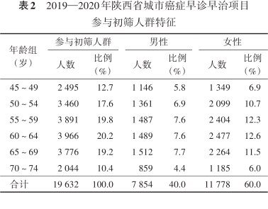 2019—2020年陕西省城市癌症早诊早治项目参与初筛人群特征