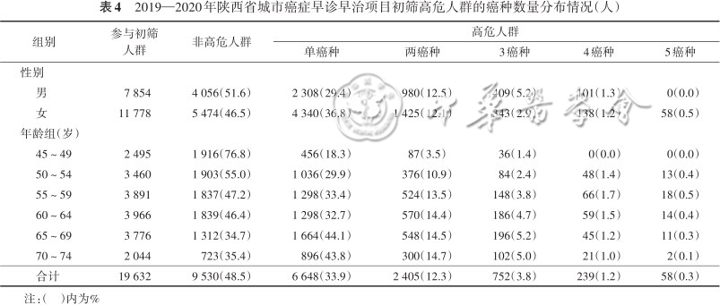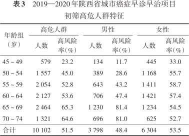 2019—2020年陕西省城市癌症早诊早治项目初筛高危人群特征