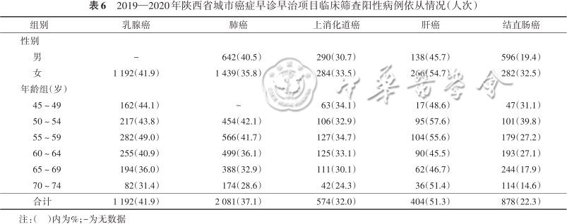 分析陕西省2019—2020年城市癌症早诊早治项目的筛查情况。