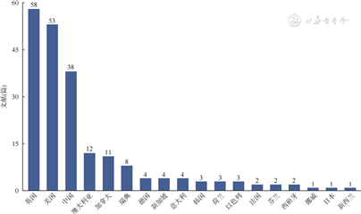 (1)研究者分布:本研究所纳入文献的通讯作者(多位则取第一位进行统计)来自于英国、美国、中国等18个不同国家,其中来自英国的有58名(27.62%),其他国家共152名(72.38%)(图2)。