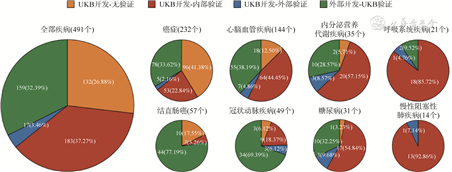 本研究存在局限性。第一,仅检索了UKB,不足以全面体现大型人群队列对于疾病预测模型研究的贡献;对于将预测模型作为次要甚至补充结果的研究,在检索中或许会有所遗漏。第二,疾病分类不够精细。第三,因篇幅有限,未详细探讨各类疾病模型预测因子的情况,将未来继续研究。第四,疾病预测模型的构成包含组学、表型、环境、生活方式、临床治疗等多方面数据,本研究并未深入探讨不同种类数据在模型研究中的作用与重要性。这些问题可在之后的研究中进行深入探讨。