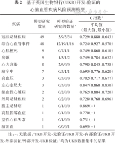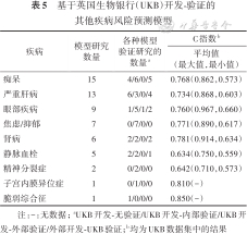 | 疾病 | 模型研究 数量 | 各种模型验证 研究的数量a | C指数b |