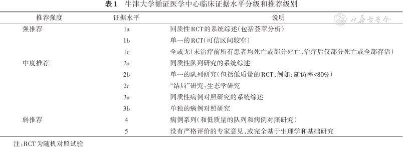 牛津大学循证医学中心临床证据水平分级和推荐级别