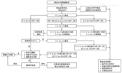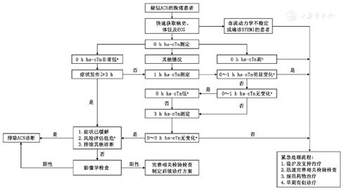 推荐意见12 不同机构根据具体情况选择合适的CDP,包括基于hs-cTn的0~1 h快速CDP、基于hs-cTn的0~3 h快速CDP和基于con-cTn及HEART评分的CDP。