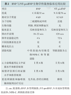 BNP主要由心肌细胞在机械性张力和充盈压增加时分泌的神经内分泌多肽。当心肌细胞膜将压力信号传至细胞内时,首先合成原前体肽,随后裂解成信号肽和BNP前体,再进一步酶解为无生物功能的N末端直链1~76氨基酸(amino acid,aa)的NT-proBNP和有生物学功能的C末端带有环状结构的77~108aa的BNP。理论上NT-proBNP和BNP被等摩尔数分泌到外周循环中,但由于二者分子大小不同、清除机制不同,因此外周血实际摩尔浓度并非1∶1关系。BNP主要通过与利钠肽清除受体(natriuretic peptide clearance receptors, NPR-C)结合进行受体介导的内化和溶酶体降解,也通过内肽酶降解和肾脏排泄。而NT-proBNP缺乏主动清除机制,主要通过肾脏、肌肉及肝脏等高血流量器官被动清除[23]。