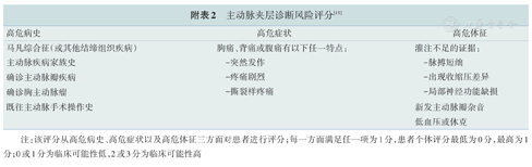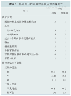 注:该评分从高危病史、高危症状以及高危体征三方面对患者进行评分;每一方面满足任一项为1分,患者个体评分最低为0分,最高为1分;0或1分为临床可能性低,2或3分为临床可能性高