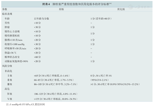 肺栓塞严重程度指数和其简化版本的评分标准[16]