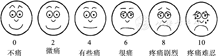 由11个数字(0~10)组成,0代表不痛,10代表疼痛难忍;该方法需要患儿自己用这些数字来描述疼痛的强度。适于学龄期的年长儿童,很多学者均验证了该方法的可靠性和有效性[3]。