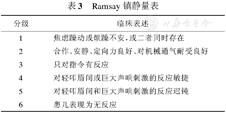 RSS是第一个用于评估患者镇静程度的量表,表格直观、使用方便。医务人员可在床边做出评估,并可动态评估,是使用最广泛的儿童镇静评估方法。根据如何唤醒患儿将镇静程度分为6级,其中1级为清醒,2~4级可能是理想的临床镇静终点(表3)。人工通气支持条件较高的患儿可能需要更深程度的镇静,RSS可达3~5分。RSS中的刺激方法是专门设计的,不得惊吓患儿;事实上RSS不会将患者完全唤醒至清醒状态,这样其睡眠模式不会被干扰。RSS的缺陷是它有赖于患儿的反应能力,因此不适于使用神经肌肉阻滞剂的患儿;RSS的1级并未对躁动程度进行进一步分级,而这有时非常重要,SAS却注意到了这点;同时6级无反应也不能区分患儿是处于轻型的全身麻醉还是深昏迷。