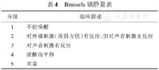 Brussels镇静量表和RSS类似,但较RSS更为简单,且分级与镇静深度的关系正好与RSS相反(表4)。研究显示,该量表有利于避免对机械通气患儿的过度镇静。