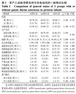 早产儿动脉导管关闭与否各组间的一般情况比较