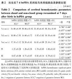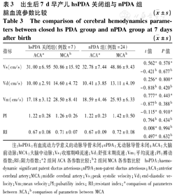 出生后7 d hsPDA关闭组与未闭组脑血流参数比较(