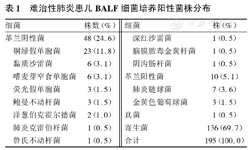 选取2010年8月至2011年12月在天津市儿童医院呼吸科治疗,对常规抗感染治疗超过2周仍无效的难治性肺炎患儿368例进行纤维支气管镜检查,并行支气管肺泡灌洗,BALF做细菌培养和药敏试验。