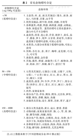 | 食物嘌呤含量(mg/100g可食部) | 食物举例 |