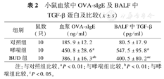 小鼠血浆中OVA-sIgE及BALF中TGF-β蛋白及比较(