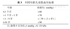 1.低血压:血压<该年龄组第5百分位,或收缩压<该年龄组正常值2个标准差以下。