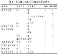 | 病原菌 | 感染部位 | 标本来源 | 例数 | 清除例数 |