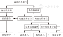 目标治疗是指在患者有深部真菌感染的临床特征,以及相关影像学资料和真菌感染的病原学证据,达到临床诊断或确诊IFD后进行的抗真菌治疗[20]。目标性治疗的目的在于控制临床症状和相关损伤,彻底清除真菌病原。目标性治疗应是儿童深部真菌感染治疗的重点内容。真菌培养对确证真菌感染尤为重要,临床上对有疑似真菌感染者,应根据感染部位、收集相应标本反复多次查找真菌病原。但对培养结果则需通过对真菌种类、取样部位、标本质量做出综合判断,才有助于指导诊断并避免过度治疗。真菌培养结果的解读步骤见图1[28]。如果最终明确了感染真菌的病原,可依据真菌种类、药物抗菌谱、性价比及患儿的具体情况选择用药。