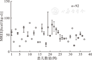圈代表每位入选患儿通过间接测热法获取的实际能量消耗中位数值;MREE:实际静息能量消耗值。