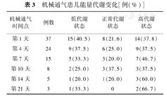 | 机械通气时间点 | 例数 | 低代谢状态 | 正常代谢状态 | 高代谢状态 |