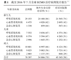 截至2016年7月全球ECMO治疗病例统计报告[1]