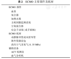抗凝治疗:与所有ECMO患者相同。一般采用普通肝素,在单剂负荷量后,全程ECMO给予肝素静脉维持。抗凝目标为ACT 180~220 s(正常值的1.5倍),或维持凝血活酶时间(PPT)在正常值的1.5倍。期间保持凝血酶原时间、纤维蛋白原含量在正常范围,血小板80×109/L以上。