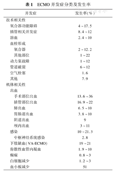 ECMO并发症分类及发生率