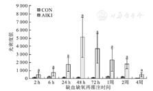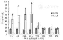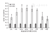CON 2 h、6 h、24 h、48 h、72 h、1 w、2 w、4 w分别代表对照组2 h、6 h、24 h、48 h、72 h、1周、2周、4周组,AIKI 2 h、6 h、24 h、48 h、72 h、1周、2周、4周分别代表缺血再灌注后2 h、6 h、24 h、48 h、72 h、1周、2周、4周组。
