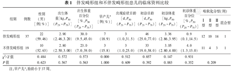 伴发畸形组和不伴发畸形组患儿的临床资料比较
