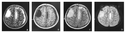 对所有疑似脑脓肿的患者都应该进行头颅影像学检查。增强CT检查是一种快速检测脓肿的大小、数量和部位的成像方法。MRI结合DWI、ADC序列对于鉴别脑囊肿和原发性肿瘤、囊性肿瘤以及肿瘤坏死是一种有价值的诊断工具,脑脓肿在DWI上为明显高信号,胶质瘤坏死囊变部分呈低信号[7]。