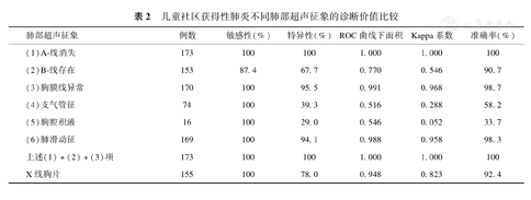 儿童社区获得性肺炎不同肺部超声征象的诊断价值比较